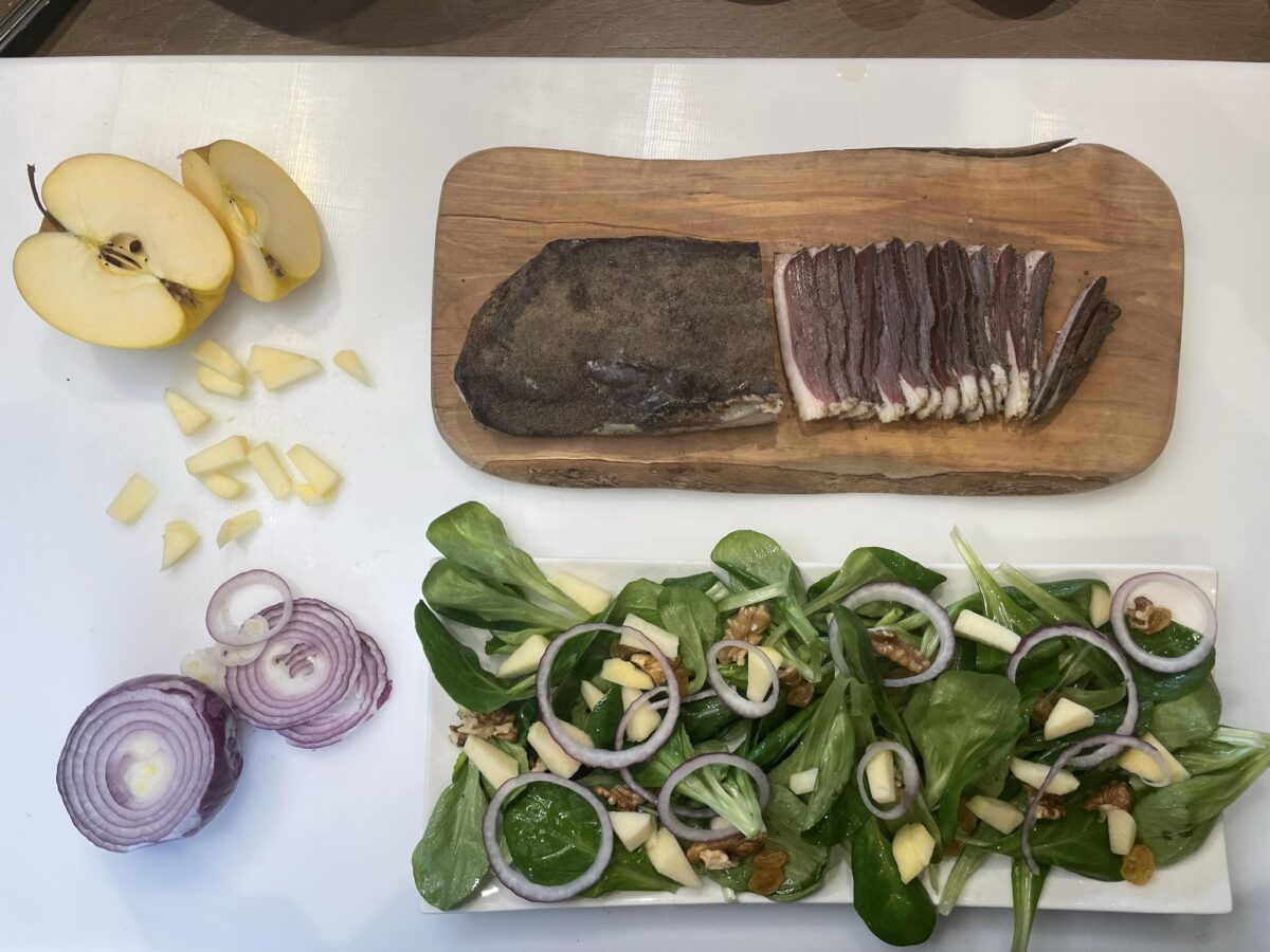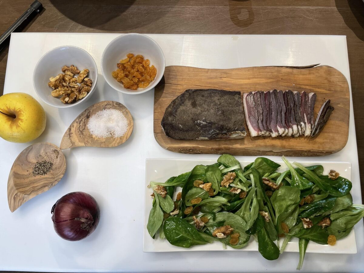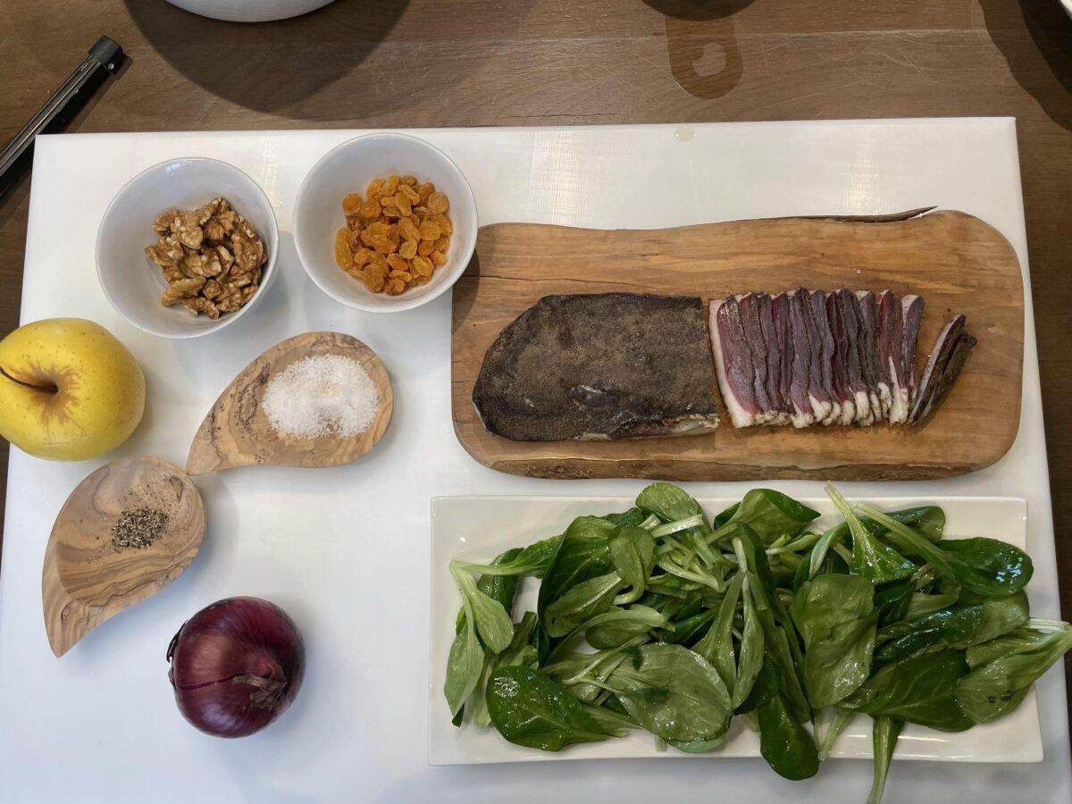 Voici une idée de recette rapide, savoureuse et équilibrée : la salade mâche et magret de canard séché.